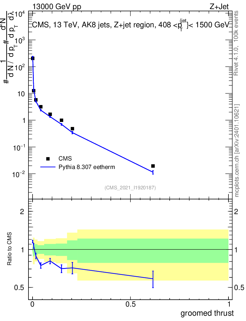 Lines: data, pythia8 8.307 eetherm |