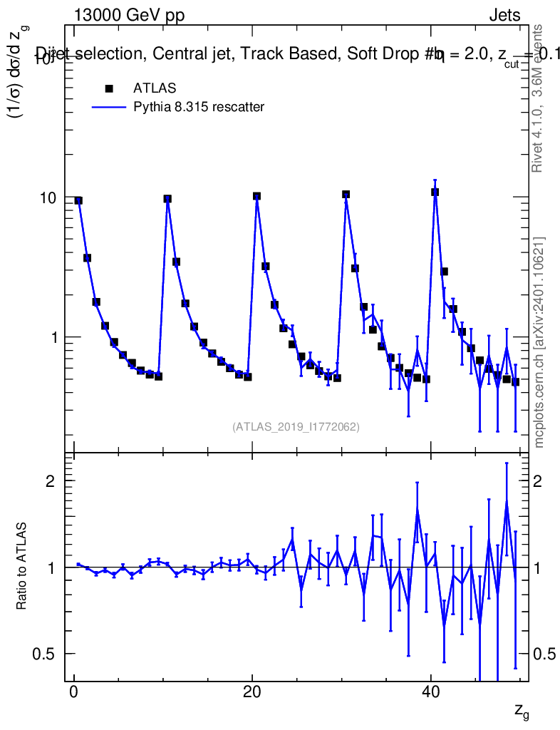 Lines: data, pythia8 8.315 rescatter |