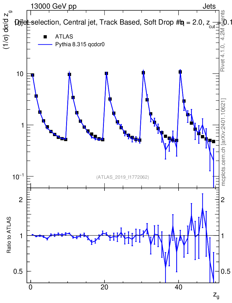 Lines: data, pythia8 8.315 qcdcr0 |