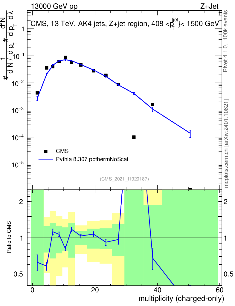 Lines: data, pythia8 8.307 ppthermNoScat |