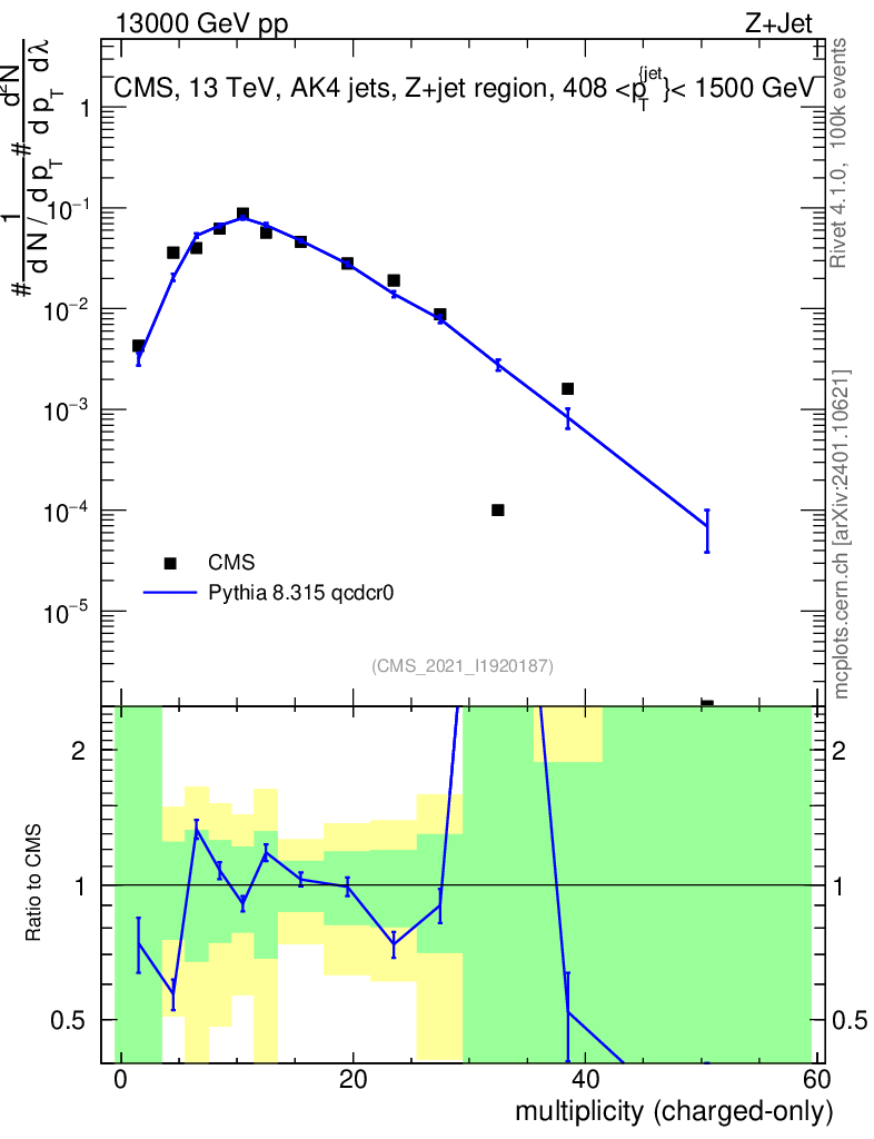 Lines: data, pythia8 8.315 qcdcr0 |