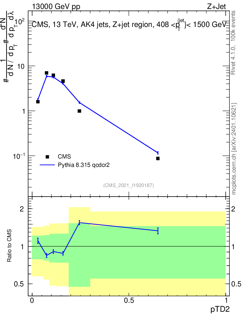 Lines: data, pythia8 8.315 qcdcr2 |