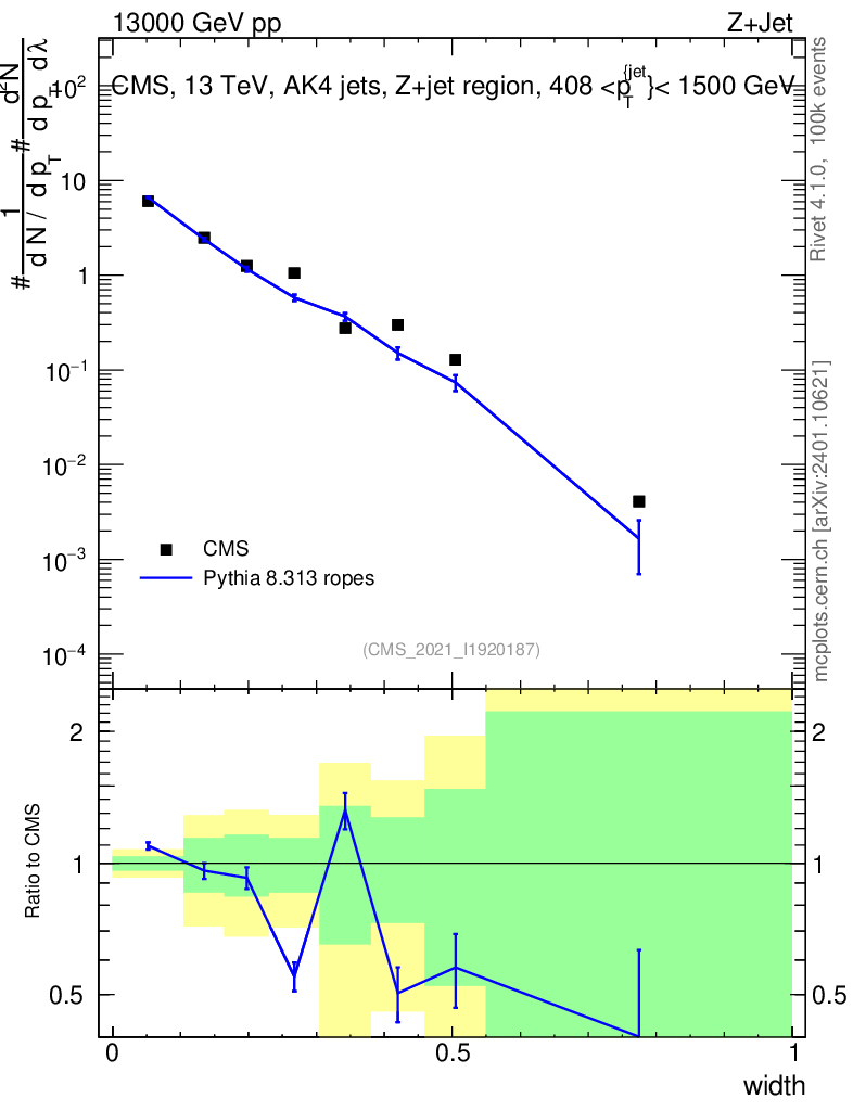 Lines: data, pythia8 8.313 ropes |