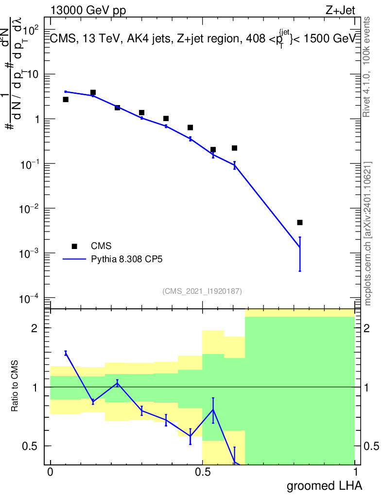 Lines: data, pythia8 8.308 CP5 |