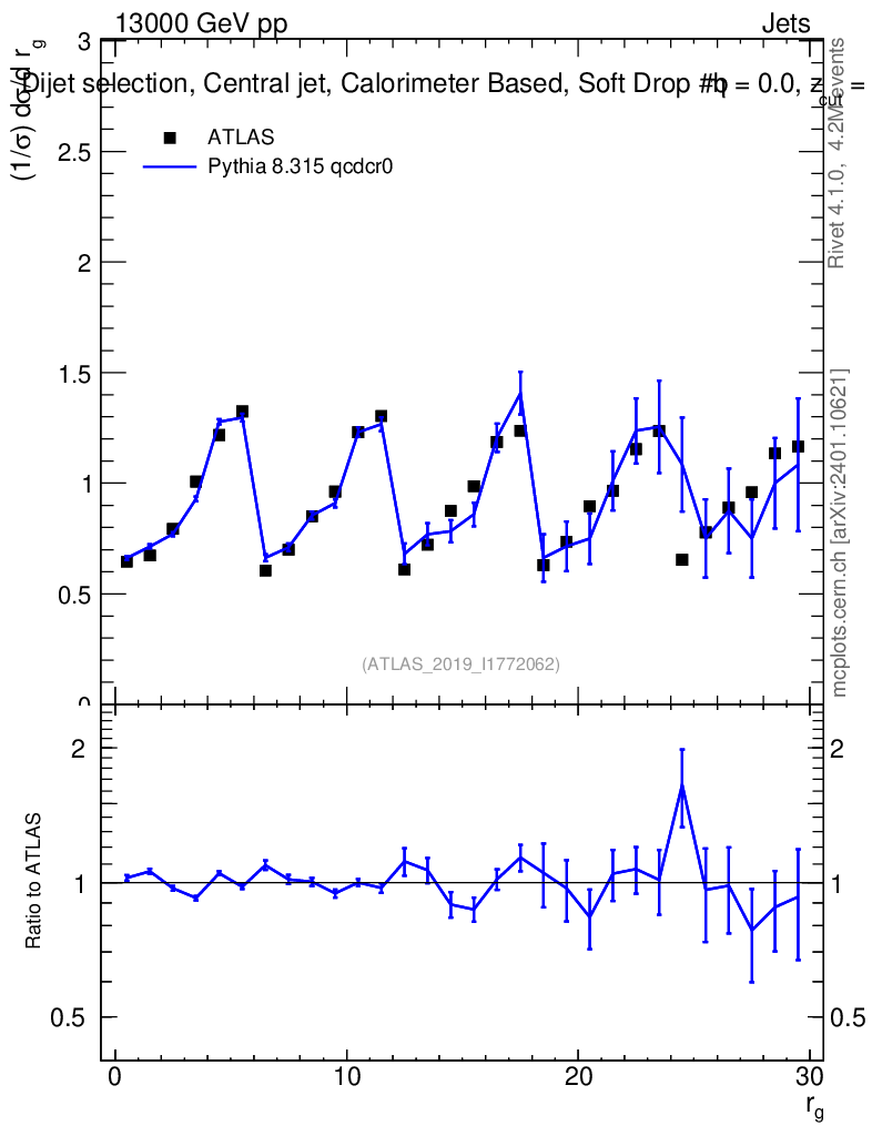 Lines: data, pythia8 8.315 qcdcr0 |