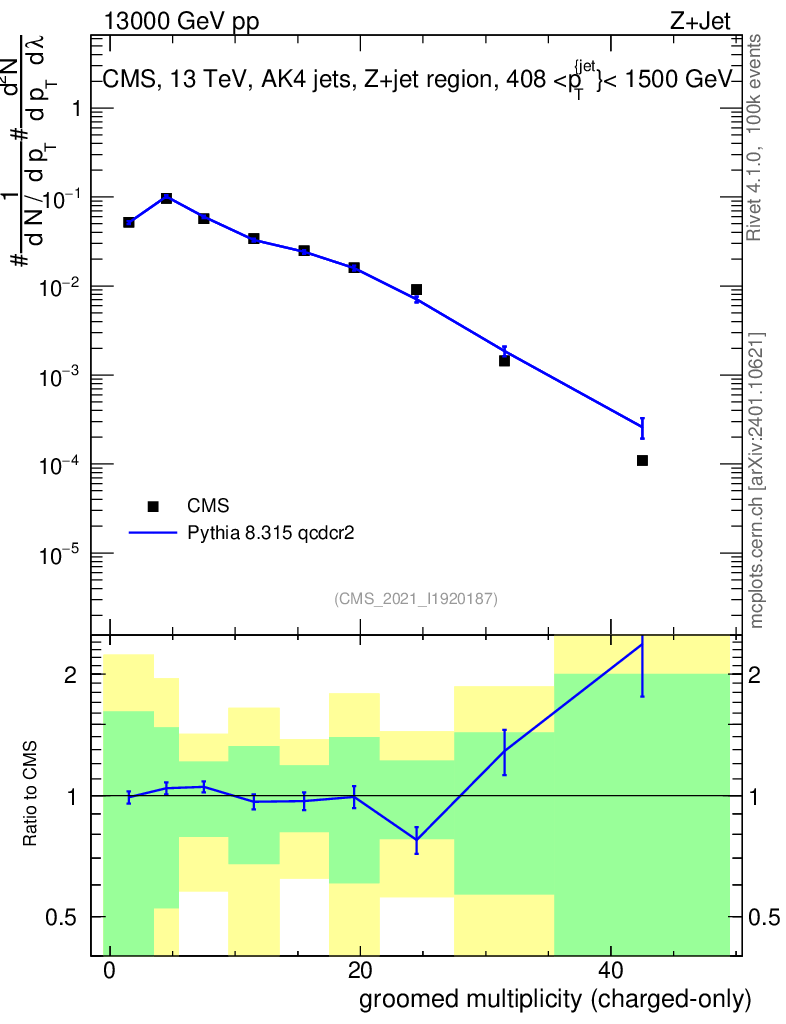 Lines: data, pythia8 8.315 qcdcr2 |