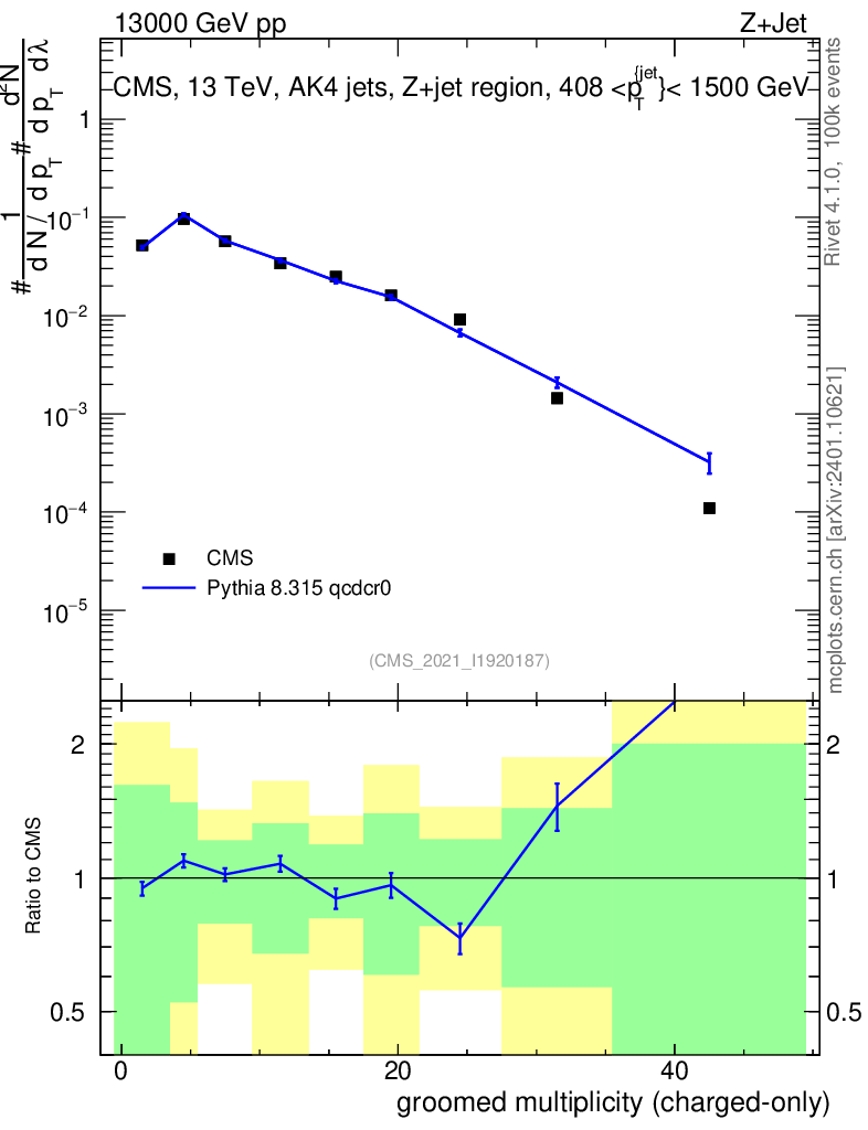 Lines: data, pythia8 8.315 qcdcr0 |