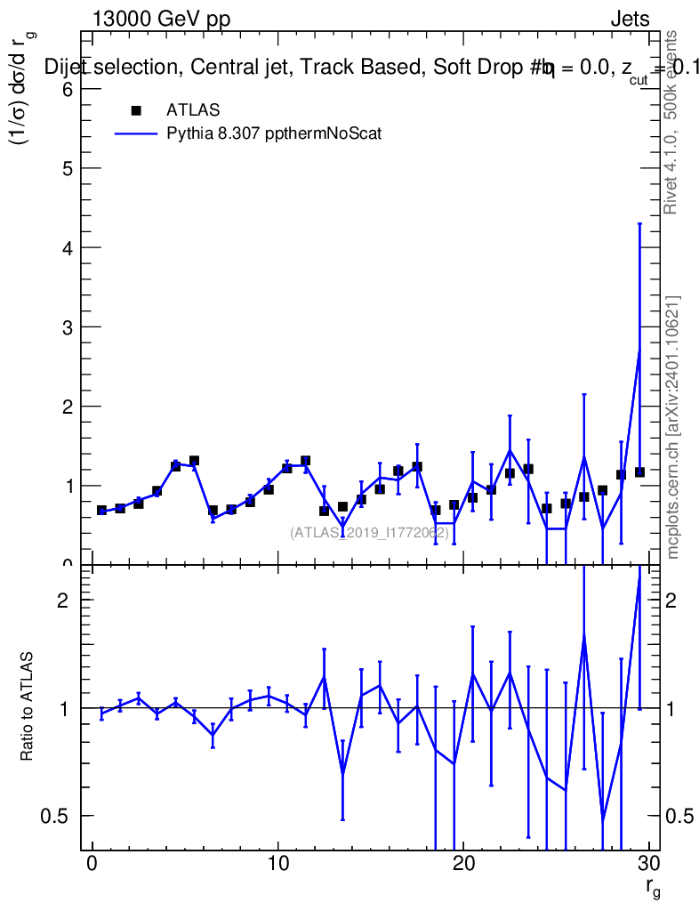 Lines: data, pythia8 8.307 ppthermNoScat |