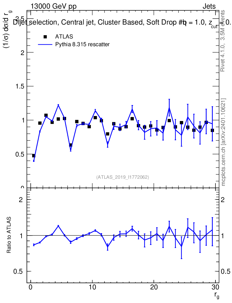 Lines: data, pythia8 8.315 rescatter |