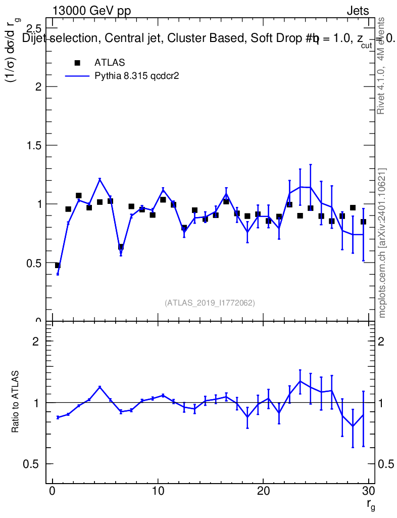 Lines: data, pythia8 8.315 qcdcr2 |