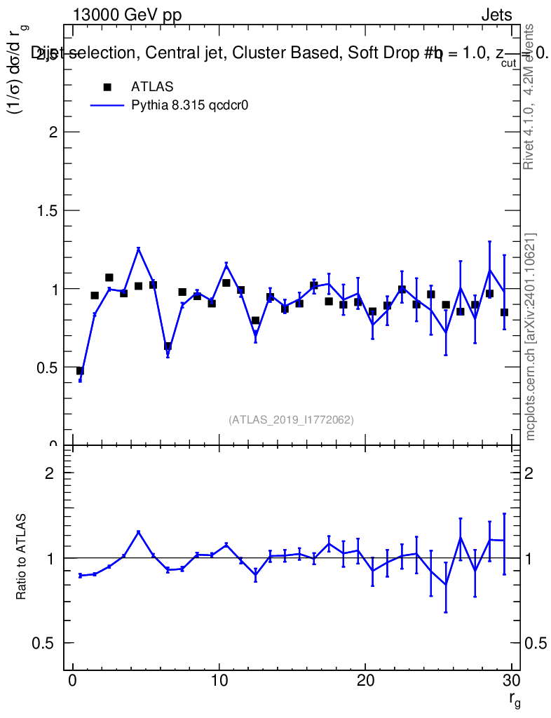Lines: data, pythia8 8.315 qcdcr0 |