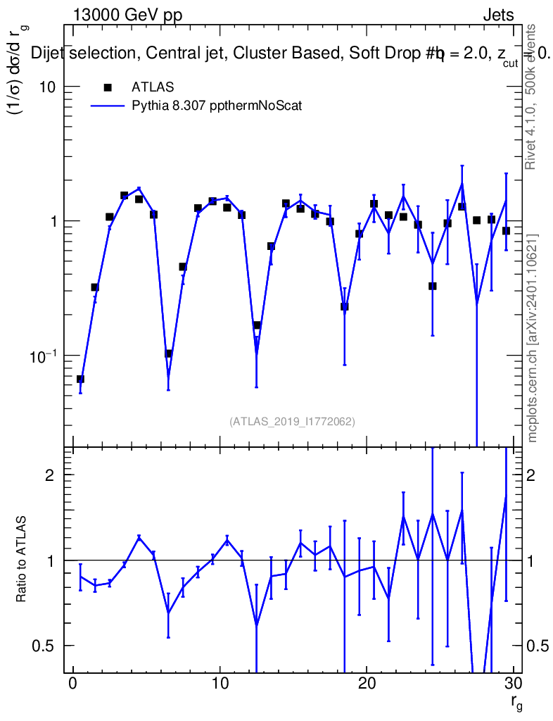 Lines: data, pythia8 8.307 ppthermNoScat |
