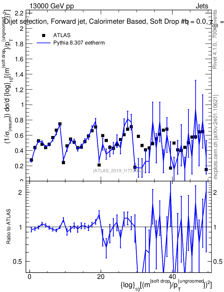 Lines: data, pythia8 8.307 eetherm |