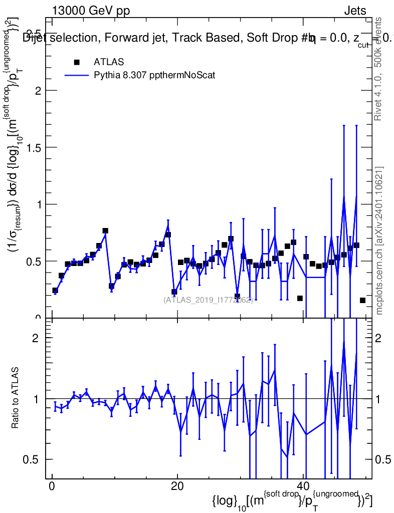 Lines: data, pythia8 8.307 ppthermNoScat |