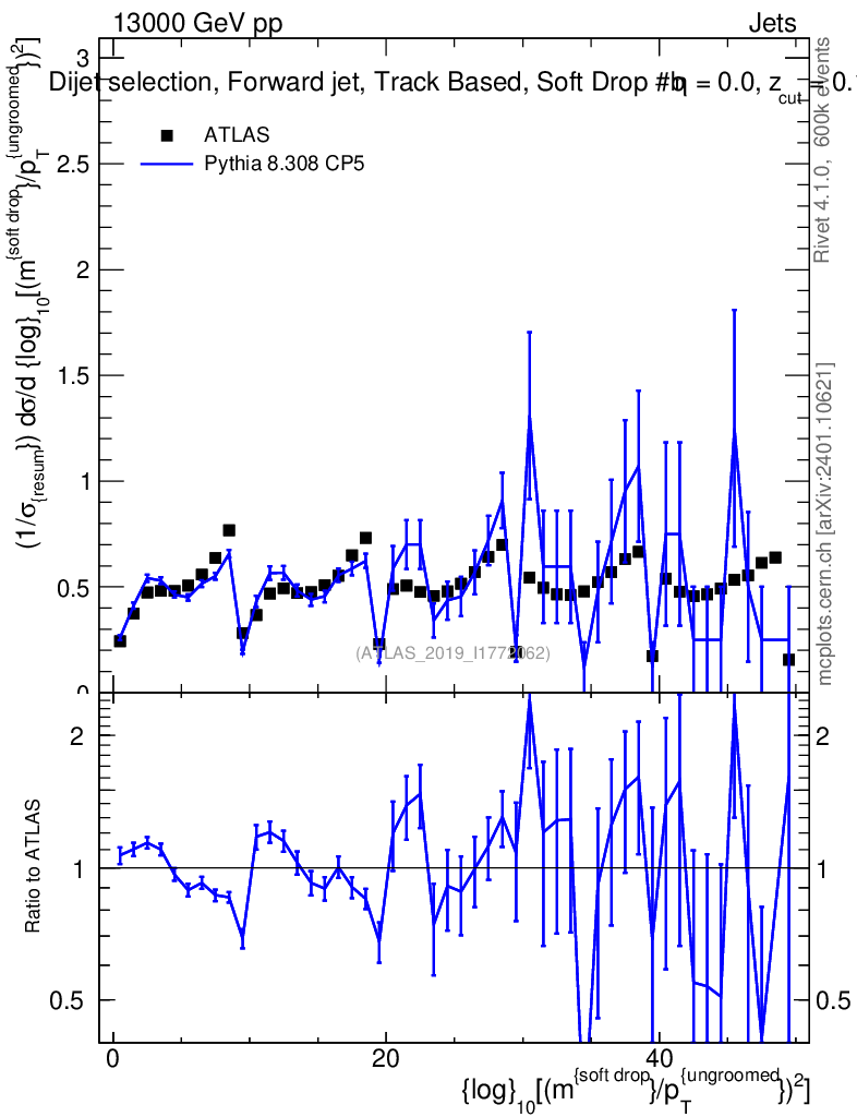 Lines: data, pythia8 8.308 CP5 |