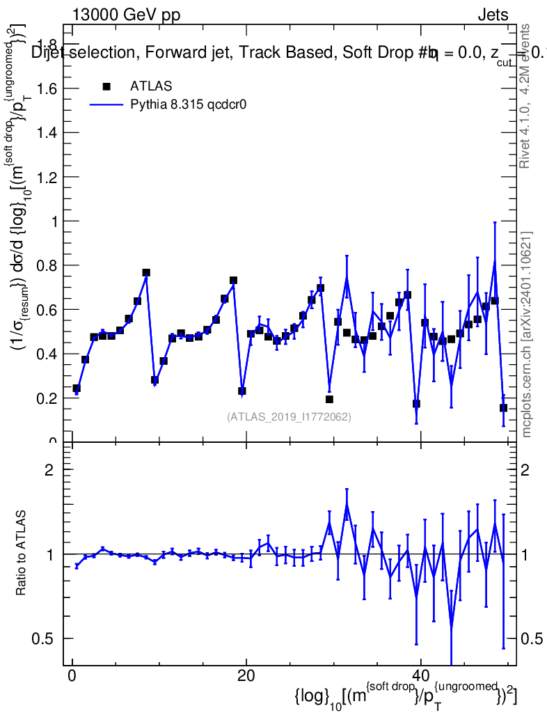 Lines: data, pythia8 8.315 qcdcr0 |