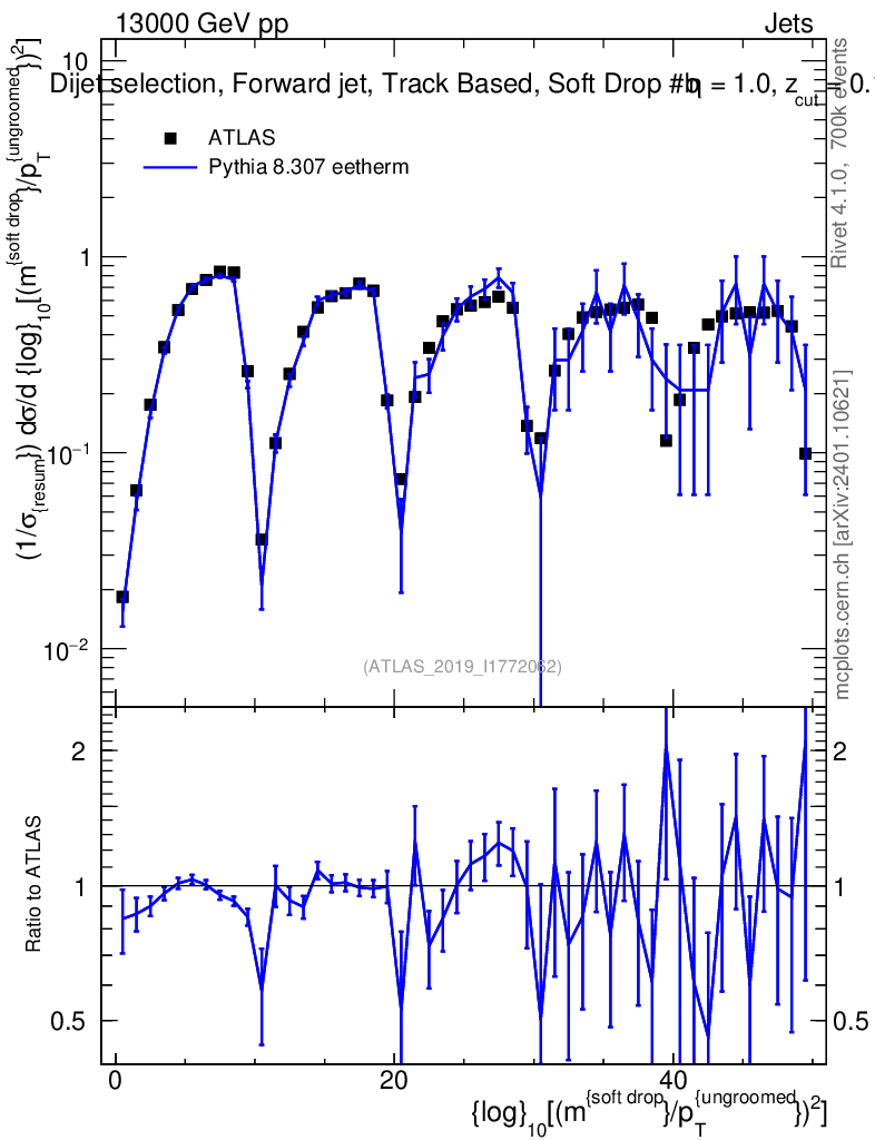 Lines: data, pythia8 8.307 eetherm |