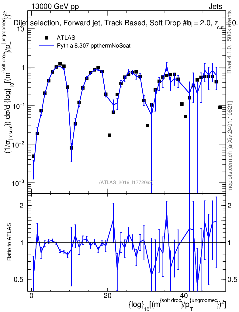 Lines: data, pythia8 8.307 ppthermNoScat |