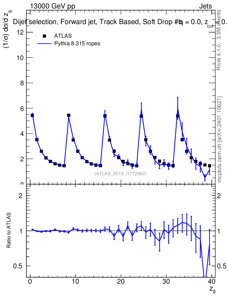 Lines: data, pythia8 8.315 ropes |