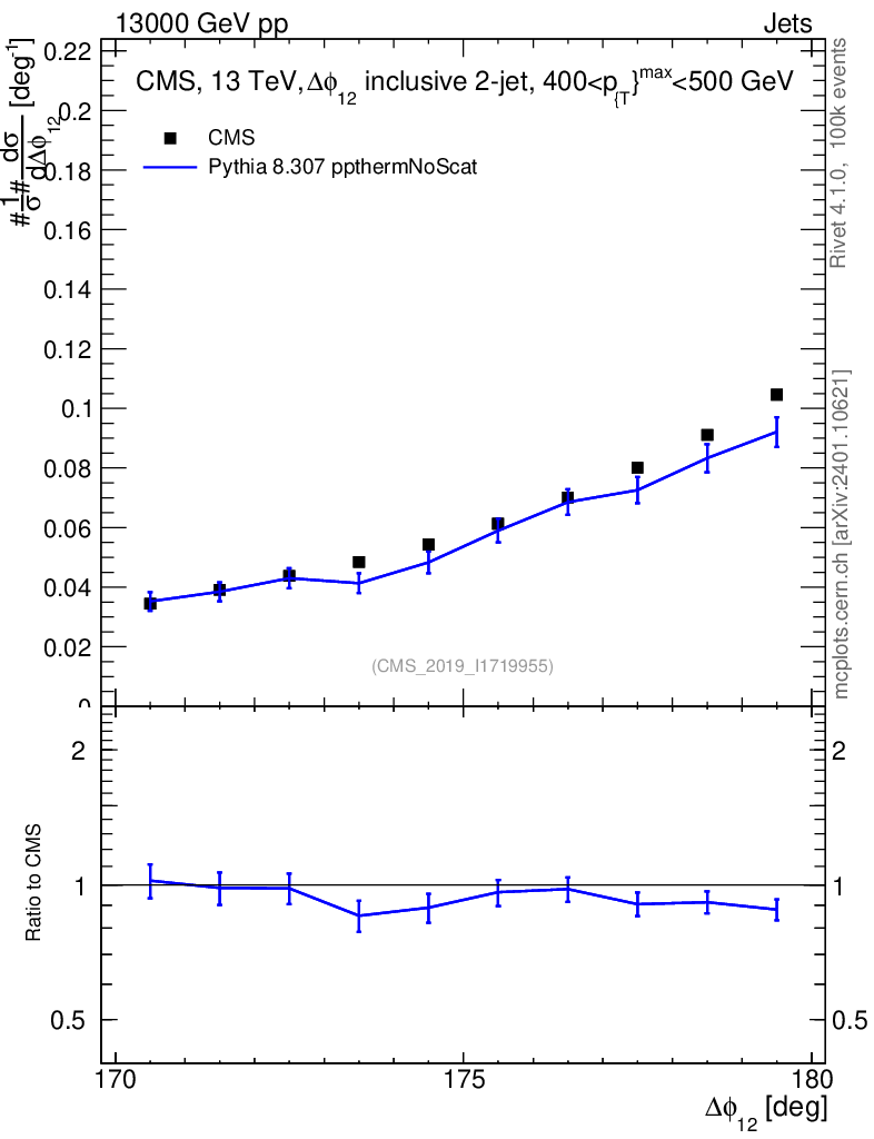 Lines: data, pythia8 8.307 ppthermNoScat |