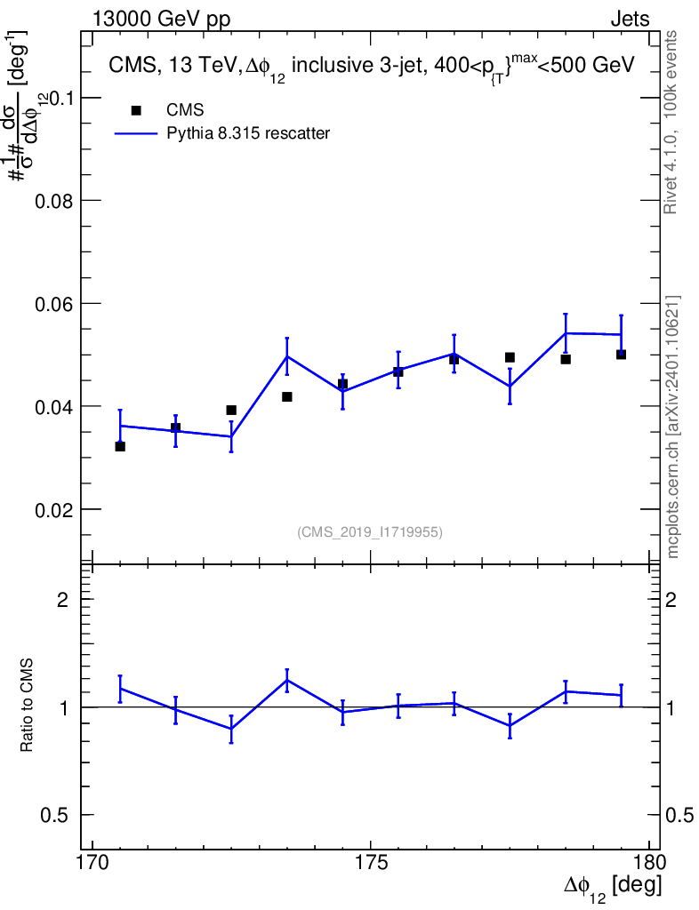 Lines: data, pythia8 8.315 rescatter |