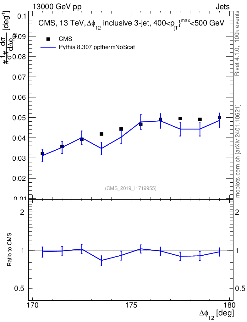 Lines: data, pythia8 8.307 ppthermNoScat |