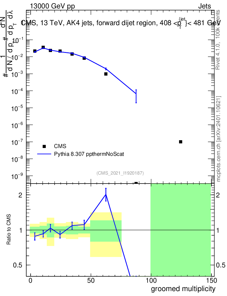 Lines: data, pythia8 8.307 ppthermNoScat |