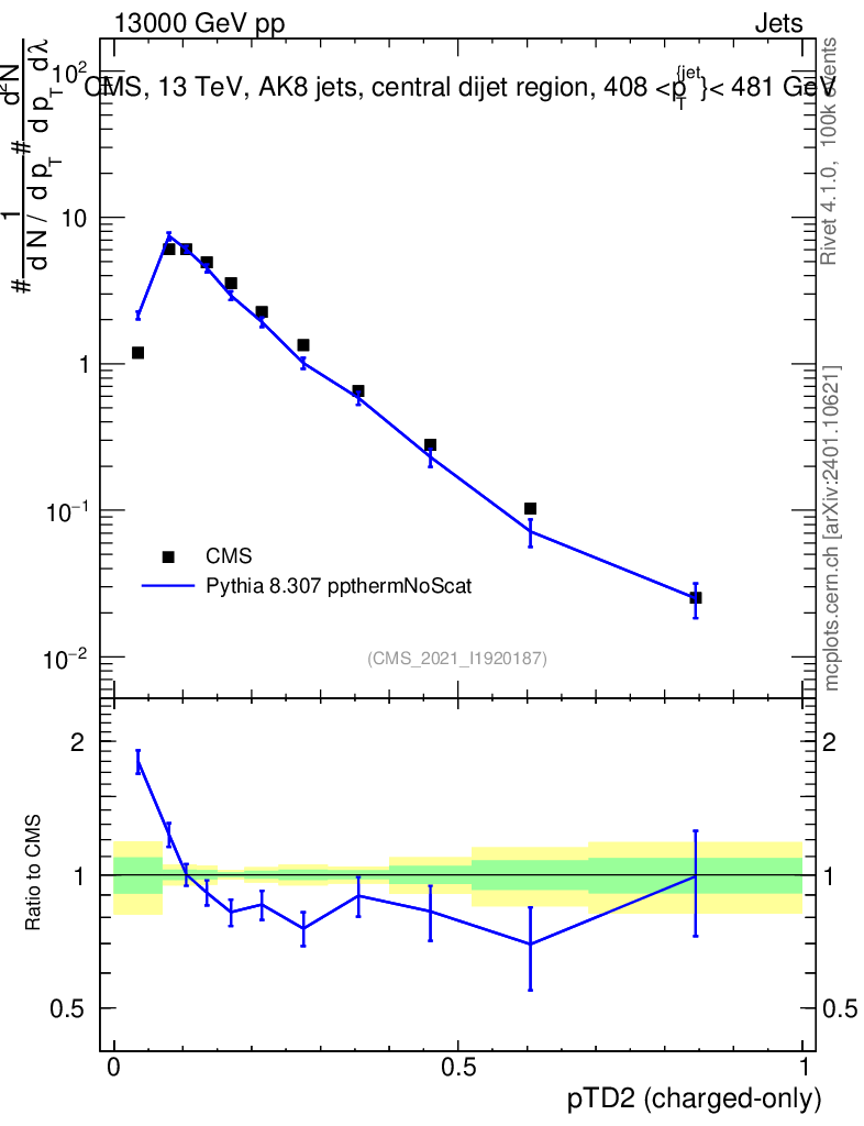 Lines: data, pythia8 8.307 ppthermNoScat |