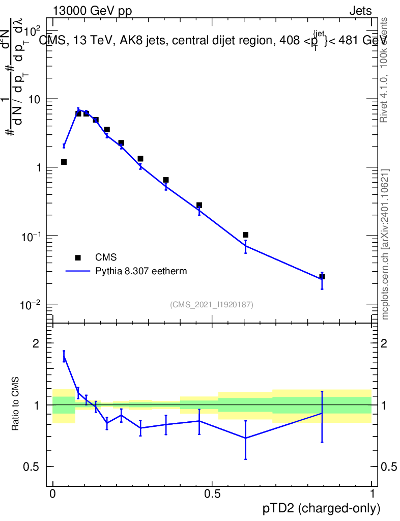 Lines: data, pythia8 8.307 eetherm |