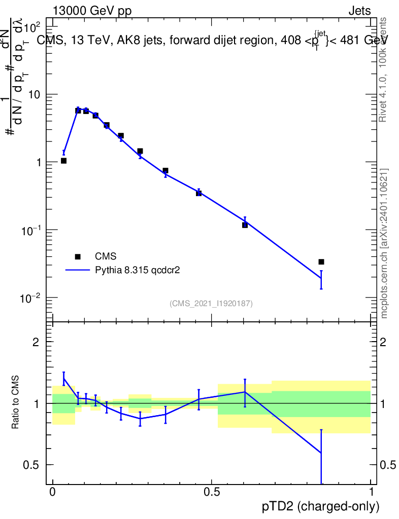 Lines: data, pythia8 8.315 qcdcr2 |