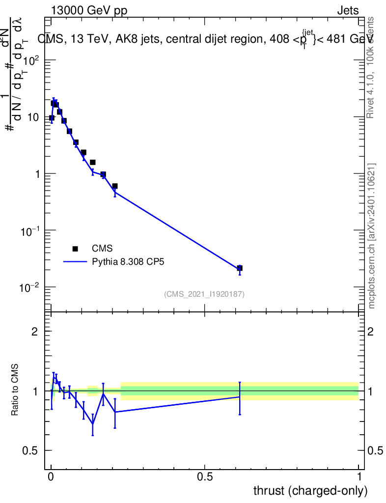 Lines: data, pythia8 8.308 CP5 |