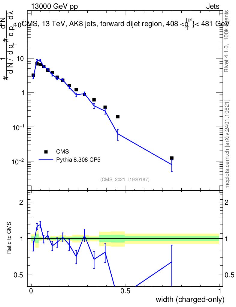 Lines: data, pythia8 8.308 CP5 |