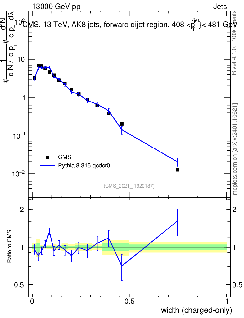 Lines: data, pythia8 8.315 qcdcr0 |