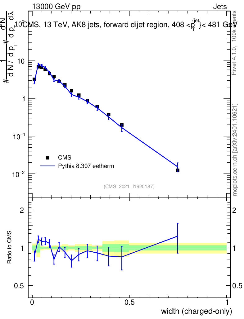 Lines: data, pythia8 8.307 eetherm |
