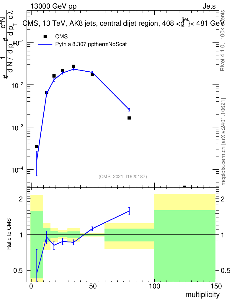 Lines: data, pythia8 8.307 ppthermNoScat |