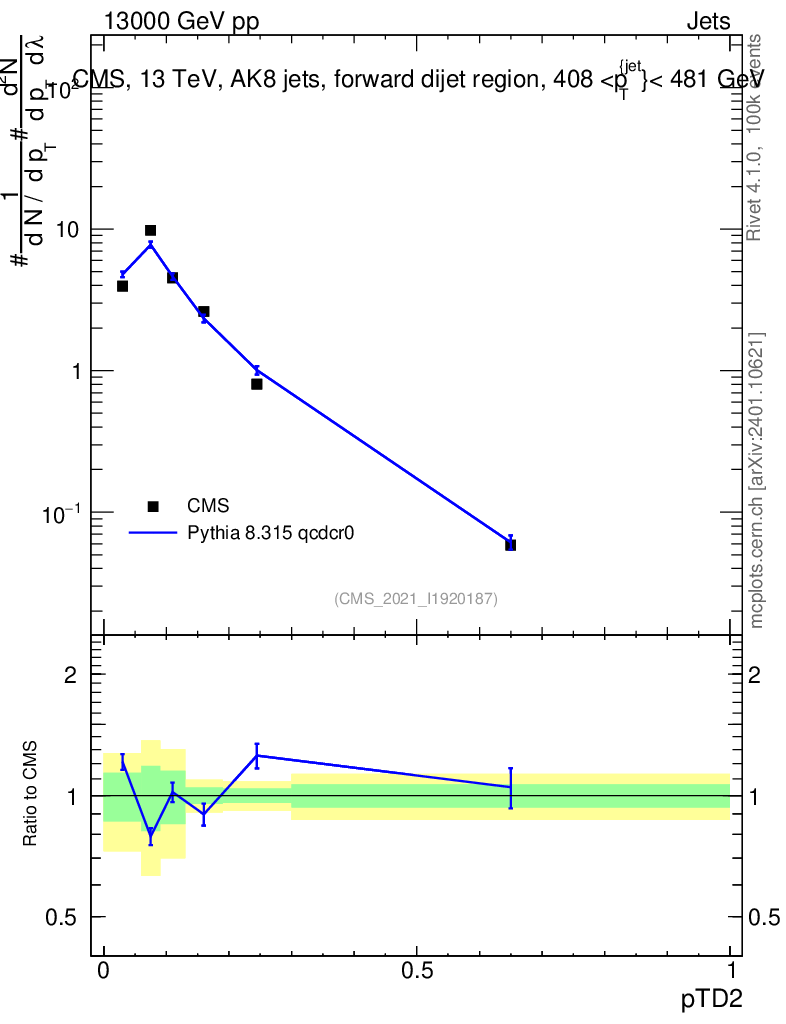 Lines: data, pythia8 8.315 qcdcr0 |
