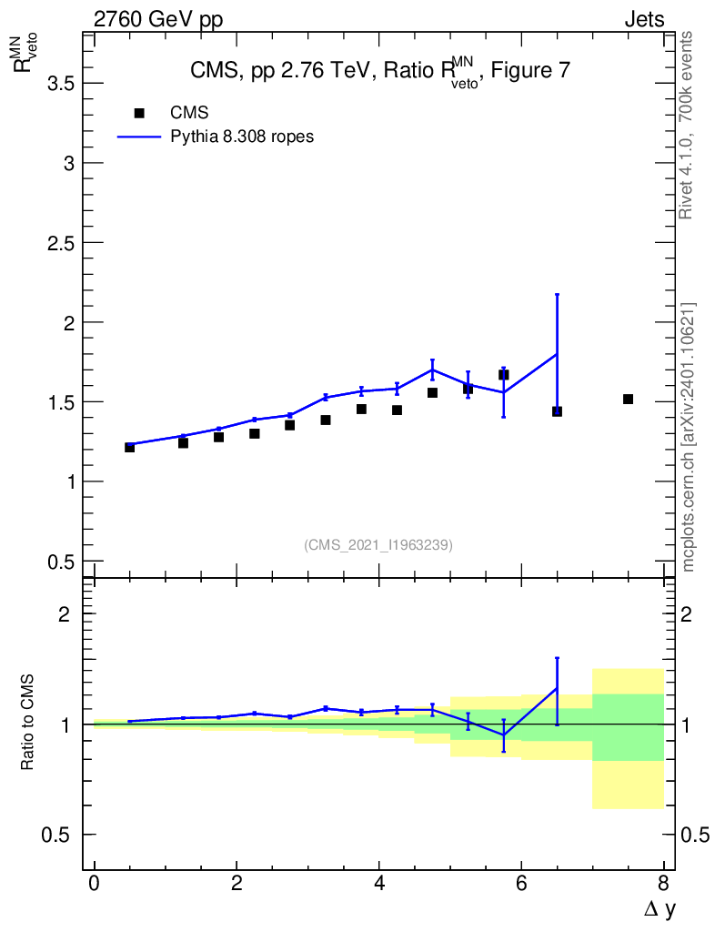 Lines: data, pythia8 8.308 ropes |