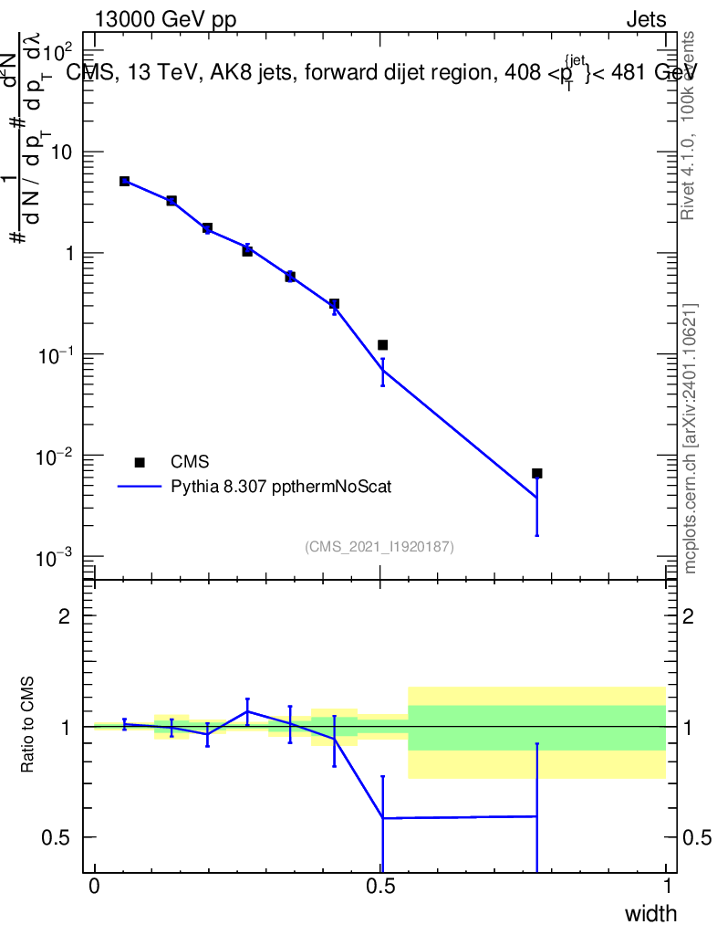 Lines: data, pythia8 8.307 ppthermNoScat |