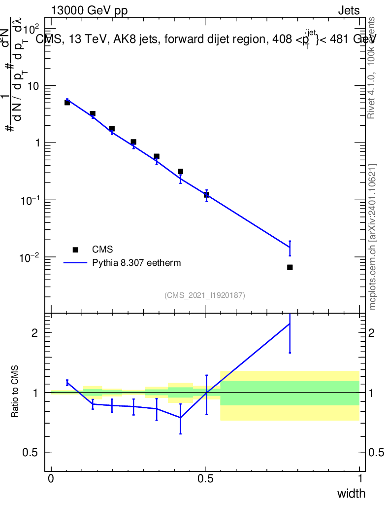 Lines: data, pythia8 8.307 eetherm |