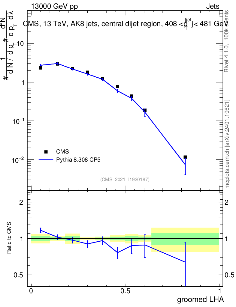 Lines: data, pythia8 8.308 CP5 |