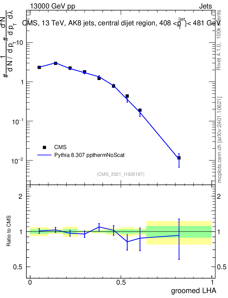 Lines: data, pythia8 8.307 ppthermNoScat |