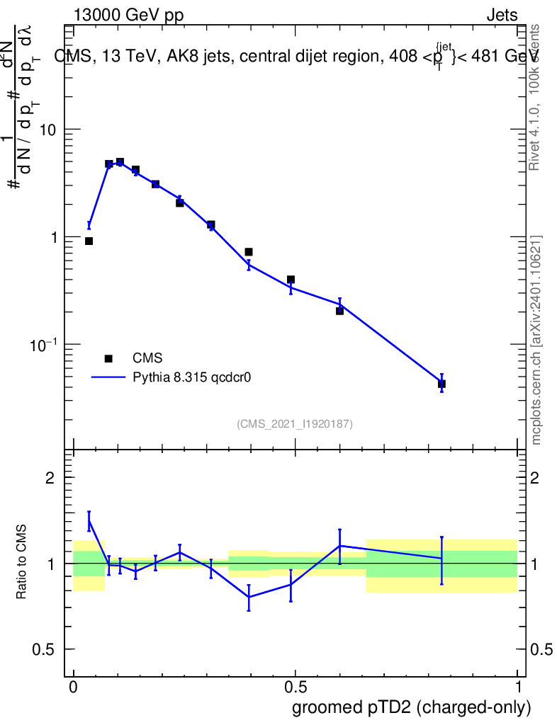 Lines: data, pythia8 8.315 qcdcr0 |