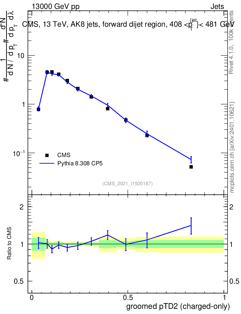 Lines: data, pythia8 8.308 CP5 |