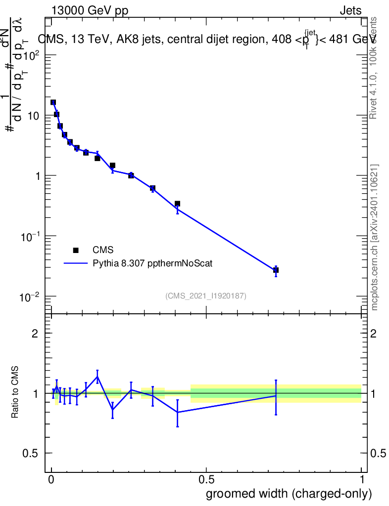 Lines: data, pythia8 8.307 ppthermNoScat |