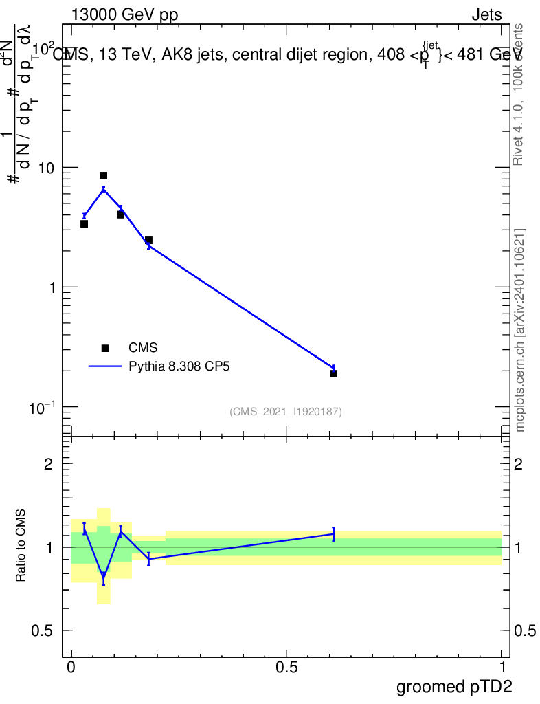 Lines: data, pythia8 8.308 CP5 |