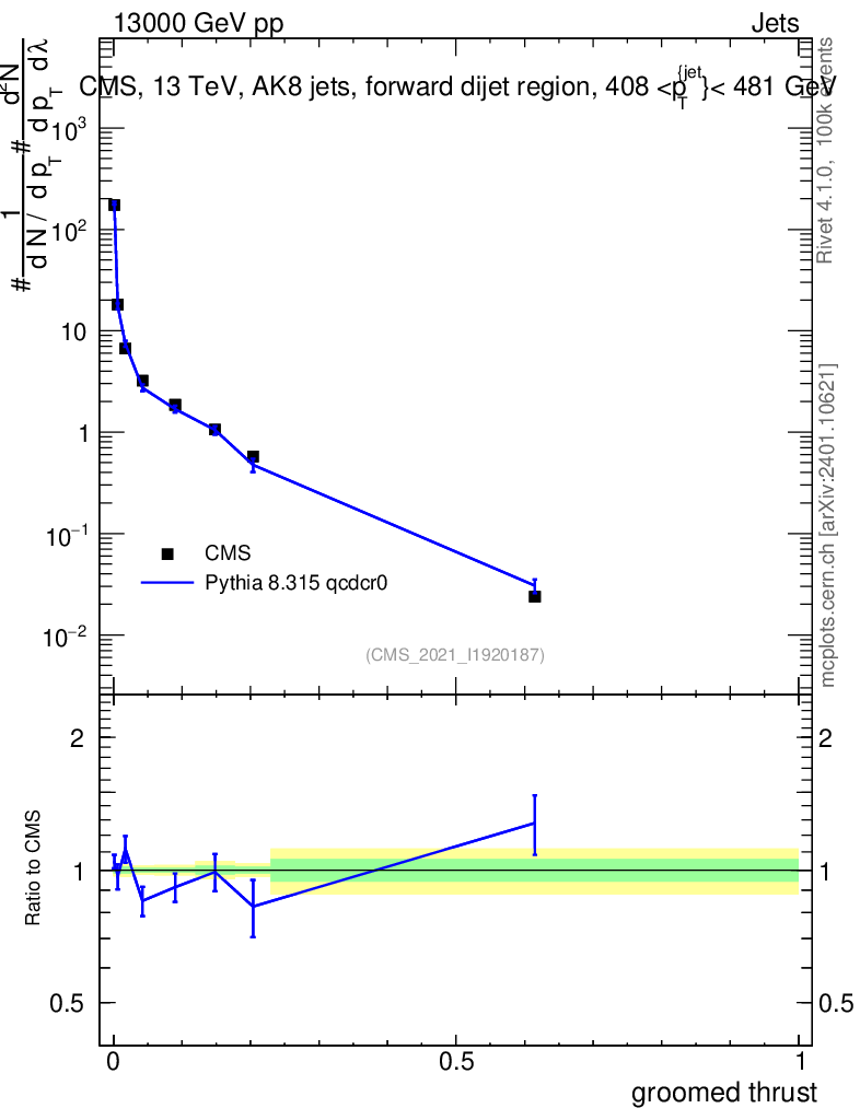 Lines: data, pythia8 8.315 qcdcr0 |