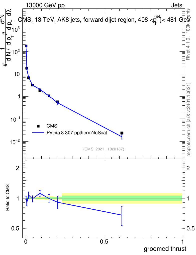 Lines: data, pythia8 8.307 ppthermNoScat |