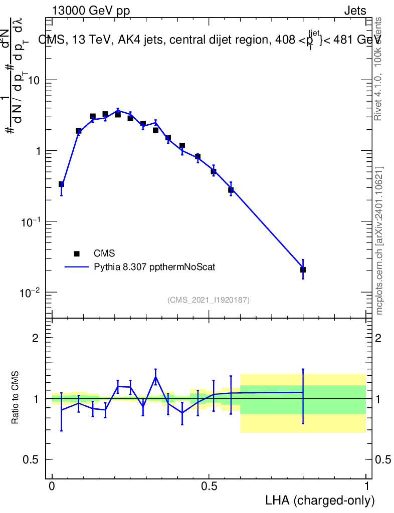 Lines: data, pythia8 8.307 ppthermNoScat |
