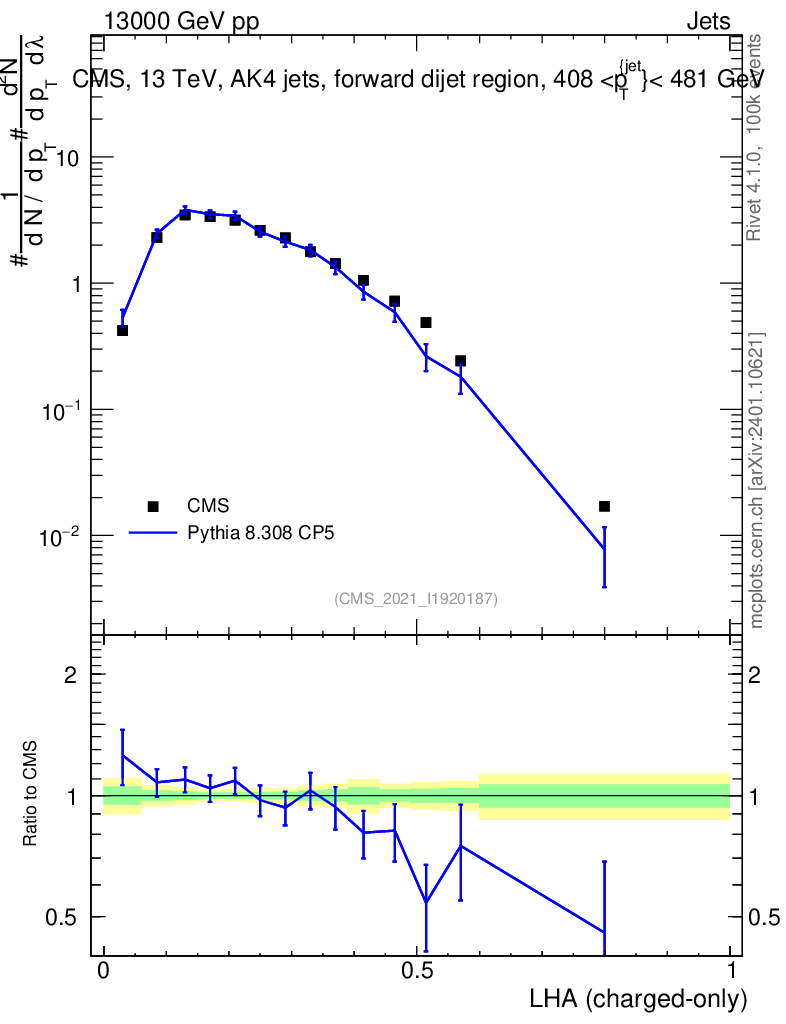 Lines: data, pythia8 8.308 CP5 |