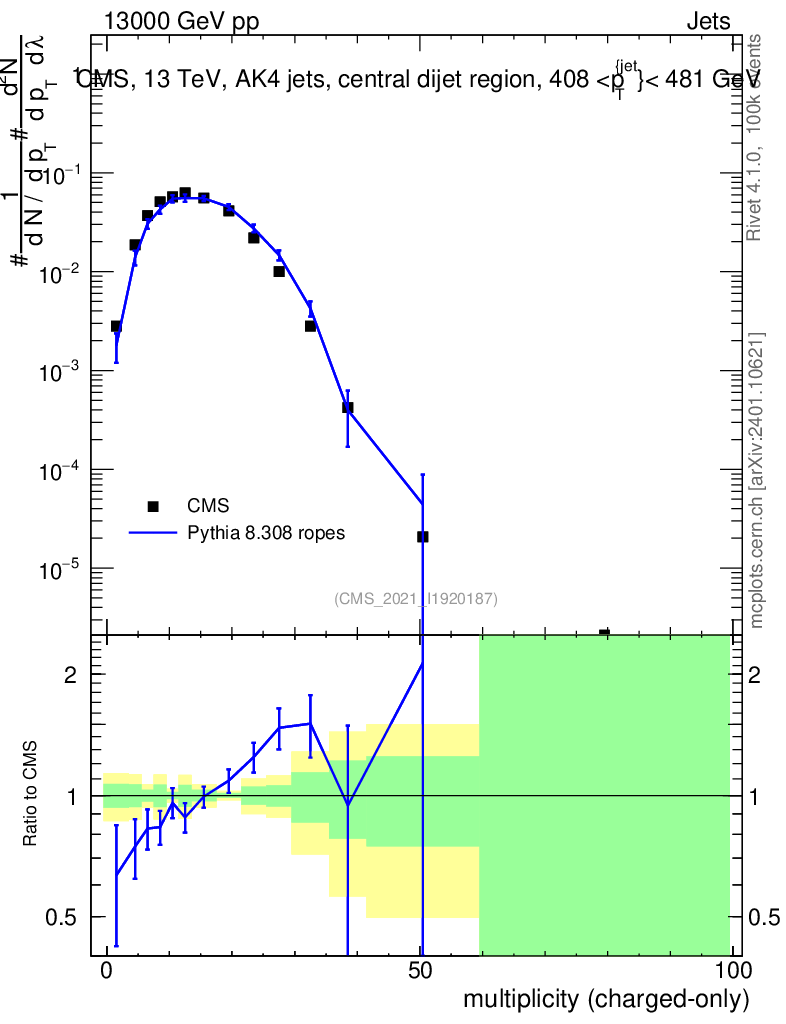 Lines: data, pythia8 8.308 ropes |